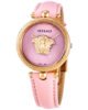 Unleash your inner goddess with the Versace Palazzo Empire women’s watch, an elegant timepiece crafted in Switzerland. This chic accessory is powered by a quartz movement, encapsulated within a round, 34mm gold-tone stainless steel case, complete with a scratch-resistant sapphire crystal and a closed case Pink Gold for maximum durability. The watch features a captivating Pink dial and matches perfectly with the sophisticated pink leather strap. With a pin buckle clasp and a water resistance of up to 34mm this Swiss-made masterpiece promises both style and functionality. VECQ00518
